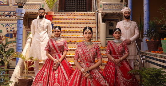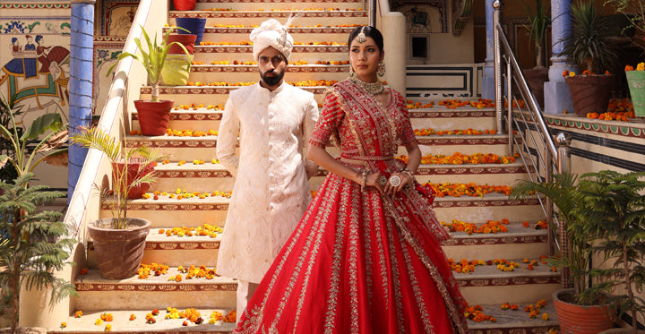 Our design philosophy is rooted in the perfect blend of traditional craftsmanship and contemporary aesthetics. With an unwavering commitment to quality, we meticulously handpick the finest fabrics, intricate embellishments, and delicate embroideries to create ensembles that narrate stories of love and celebrate cultural heritage. We believe in building patronage of craftspeople and works with rural talents, creating development in undeveloped & developing areas with artisans. Each piece in our collection is meticulously curated from the hands of skilled artisans and renowned designers who pour their heart into every stitch. We pride ourselves on the impeccable craftsmanship and attention to detail that go into creating each lehenga and sherwani. Our commitment to quality ensures that every garment is a masterpiece that will be cherished for generations to come.