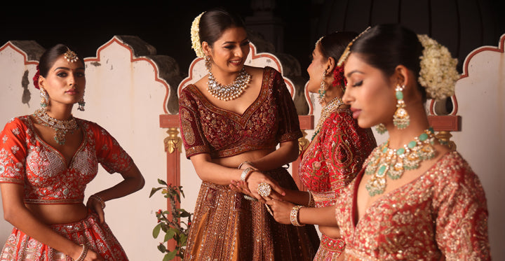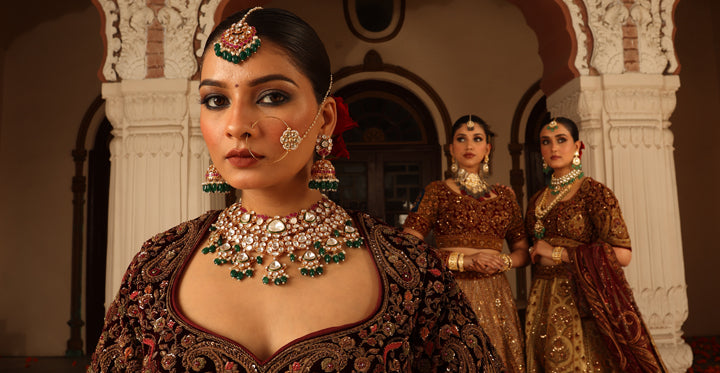 Ready to explore? Swing by Kundans Bridal Couture and experience the fusion of creativity and luxury. Our atelier is like a dreamland where your wedding fantasies come to life. Get set to rock bridal lehengas and groom sherwanis that are more than just clothes – they're an expression of your love. Join us on this roller-coaster ride of crafting bridal fashion that's as unique as your love story. Kundans Bridal Couture promises you the moon, and we're all about delivering stars.