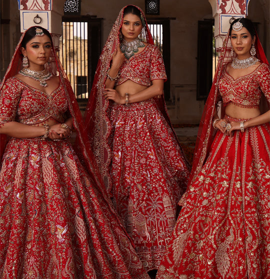Step into our showroom, and you will be captivated by a kaleidoscope of colors, designs, and styles. Whether you seek the grace of traditional reds or the elegance of contemporary pastels, we have a wide array of options to suit every taste and preference. Our collection celebrates the rich cultural heritage of India while embracing the modernity desired by today's couples.